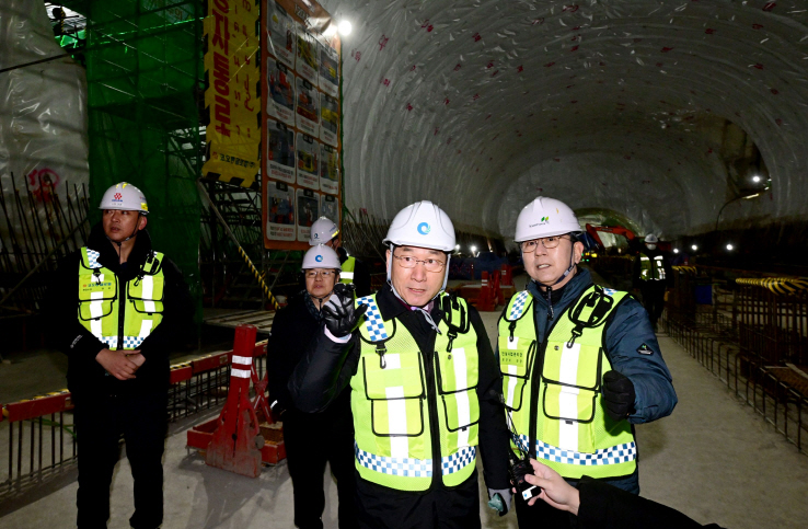 [포토] 함양·울산 간 고속도로 건설현장 방문한 구인모·진병영 군수