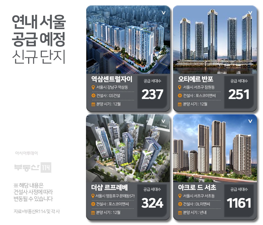 서울 연말 아크로드 서초·역삼센트럴자이 등 3643가구..