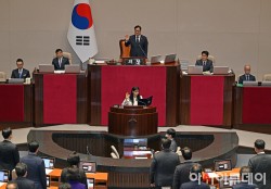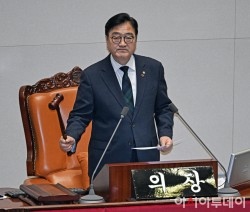 우원식 국회의장이 15일 국회에서 열린 본회의에서 의사봉을 두드리고 있다.