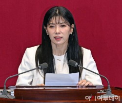이소희 국민의힘 의원이 15일 국회에서 열린 본회의에서 인사말을 하고 있다.