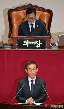 김호철 감사원장이 15일 국회에서 열린 본회의에서 인사말을 하고 있다.