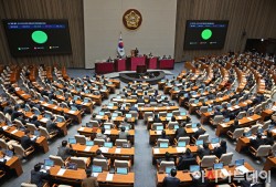 15일 국회에서 열린 본회의에서 항공·철도 사고조사에 관한 법률 일부개정법률안이 재석 213명 중 찬성 212명, 기권 1명으로 통과되고 있다.