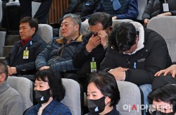 12·29 제주항공 여객기 참사 희생자 유가족들이 15일 국회에서 본회의에서 항공·철도 사고조사에 관한 법률 일부개정법률안이 가결되자 기쁨과 슬픔에 잠겨 있다.