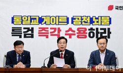 송언석 국민의힘 원내대표는 23일 "쌍특검 수용을 위한 대국민 호소 투쟁을 진행한다"고 말했다. 송 원내대표는 이날 오전 국회에서 열린 원내대책회의에서 "더불어민주당의 시스템에러를 교정하기 위해 개혁투쟁을 가열차게 전개해 나갈 것"이라며 이같이 밝혔다. 송 원내대표는 "장동혁 대표의 목숨을 건 쌍특검 단식 투쟁의 궁극적인 목표는 여의도 정치의 뿌리 깊은 악습인 검은 돈 뿌리뽑기 정치개혁이었다"며 "쌍특검의 공동 목표는 돈으로 공천장을 사고파..