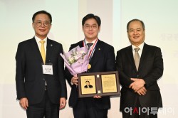 김정욱 대한변호사협회 회장(시경·98, 가운데)이 15일 오후 서울 광진구 워커힐호텔 워커홀에서 열린 '2026년 성균관대학교 총동창회 신년인사회'에서 2026 자랑스러운 성균인상을 수상한 후 기념촬영을 하고 있다. /정재훈 기자