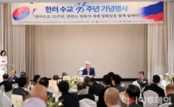 한국과 러시아 수교 35주년을 기념하는 대규모 문화행사가 20일 오후 서울 성북구 삼청각에서 성황리에 열렸다.주한 러시아연방대사관과 (사)한러친선협회가 공동 주최한 이번 행사에는 게오르기 지노비예프 주한 러시아대사를 비롯해 현정은 현대그룹 회장, 주호영 국회부의장, 선상신 아시아투데이 부회장, 송영길 소나무당 대표, 우윤근 전 주러 한국대사, 손병두 (재)대한민국역사와미래 이사장, 문훈숙 유니버설발레단장 등 양국 주요 인사 200여명이 참석했..