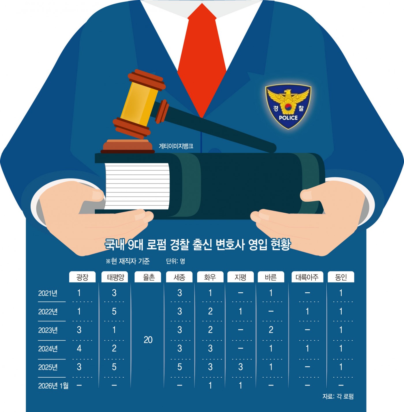 법무법인(유) 바른·동인·대륙아주 등도 꾸준히 경찰 출신 변호사를 채용하며 조직력 강화에 나서고 있다. 바른은 검찰개혁 법안과 제도 변화 등에 따라 운영 중인 경찰팀의 분리·독립도 검토 중이다. 동인도 2021년부터 매년 1명씩 경찰 출신 변호사를 영입하고 있다. 동인 관계자는 "올해도 1~2명 정도 경찰 출신 변호사를 영입할 예정"이라고 말했다.