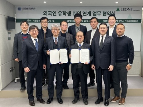 리원글로벌링크가 지난 23일 리원글로벌링크 세미나실에서 아주자동차대학교(총장 한명석)와 외국인 유학생 취업 연계 업무 협약식을 맺었다고 26일 밝혔다.