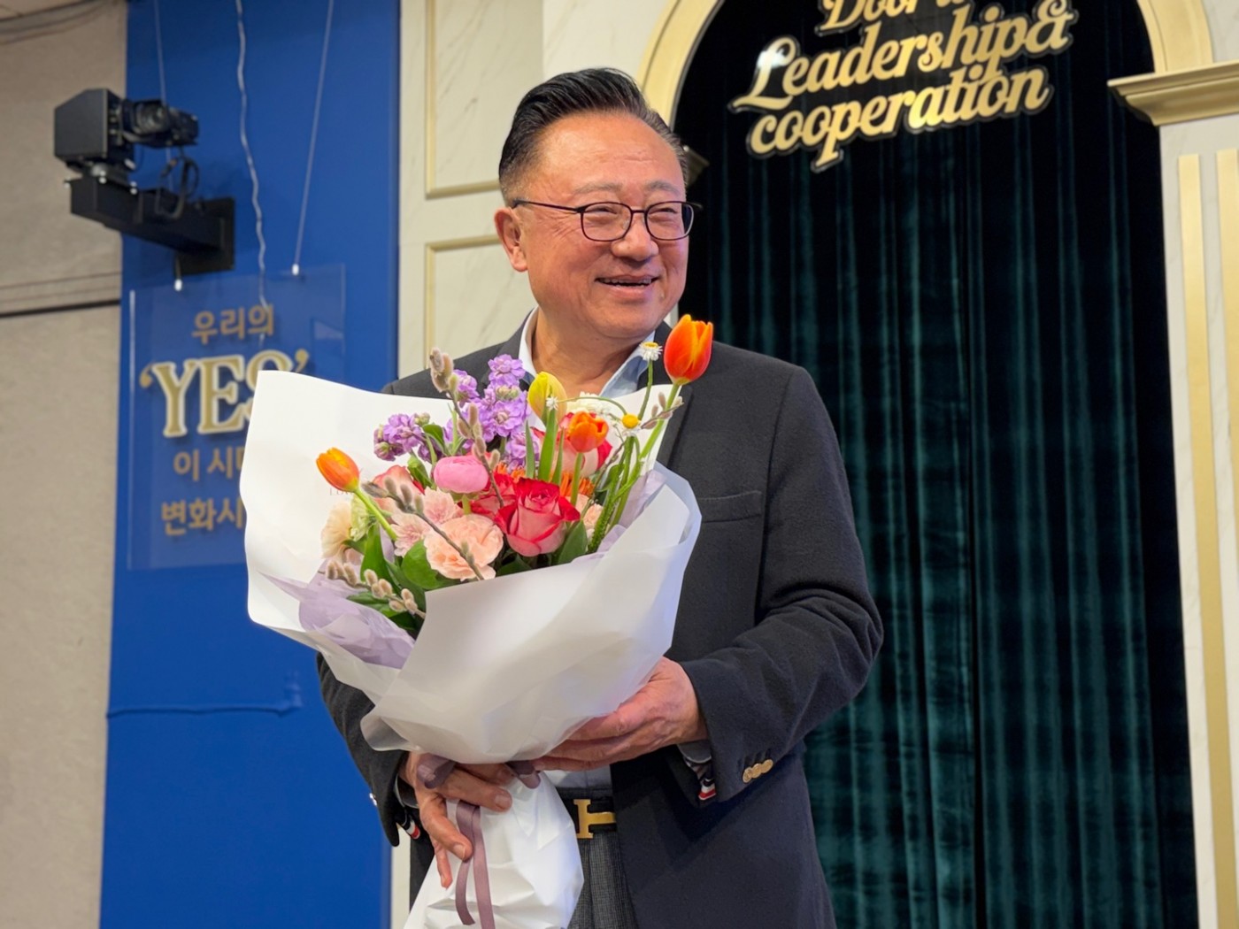 | 홀리씨즈교회 교회학교 HSS는 지난 27일 서울 서초구 방배동 홀리씨즈교회 비전홀에서 고동진 국회의원을 초청해 특강을 개최했다. 강연후 학생들이 고동진 국회의원에게 꽃다발을 선사하며 감사의 마음을 전했다. / 사진=홀리씨즈교회 |