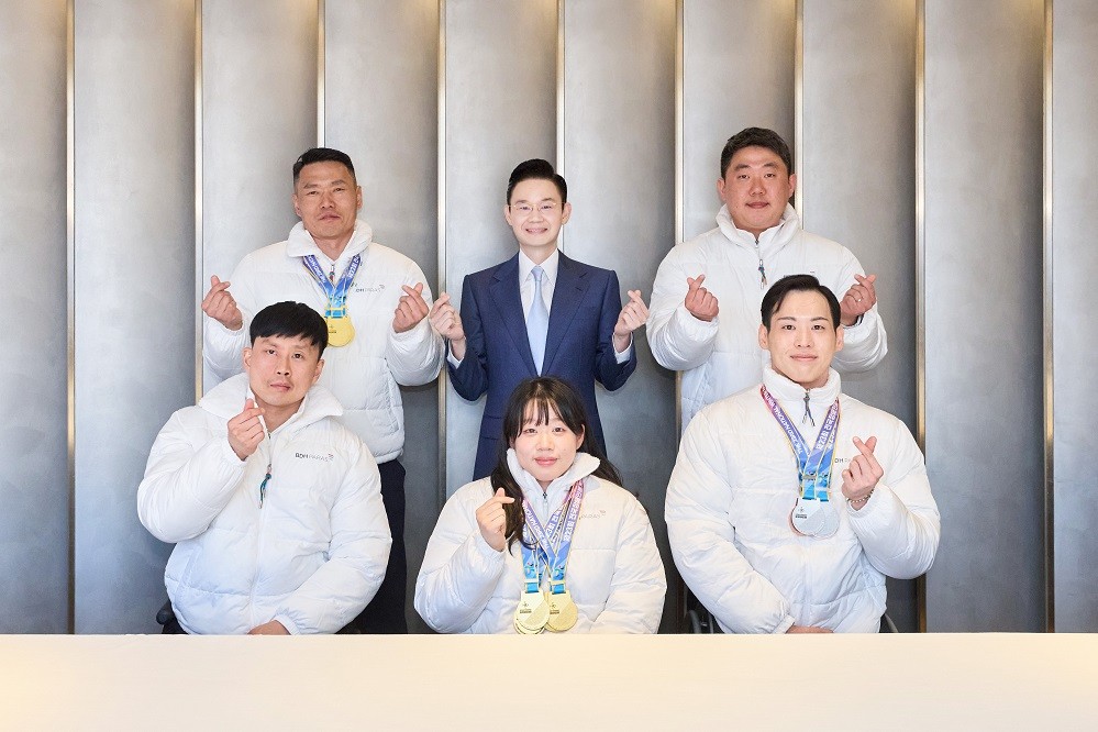지난 2일 배동현 BDH재단 이사장이 제23회 전국장애인동계체육대회에서 선전한 글로벌 장애인 스포츠단 'BDH 파라스' 선수단을 격려했다.
