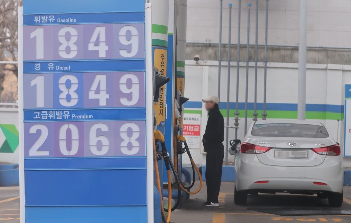 석유 최고가격제 시행 후 첫 주말인 15일 서울 시내 한 주유소를 찾은 시민이 주유를 하고 있다. /연합