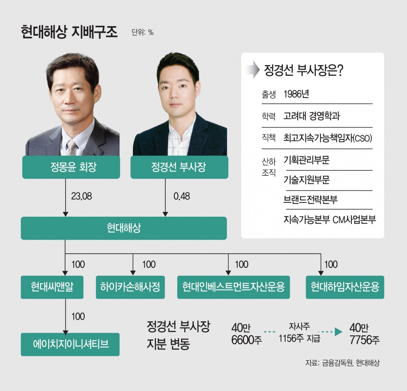 지분율 변동으로 정 부사장을 중심으로 하는 3세 경영이 본격화될 수 있다는 관측이 나온다. 업계에서는 이번 지분율 변동이 직접적인 지분 매입에 따른 것이 아니라는 점을 고려할 필요가 있다고 보고 있다. 게다가 정 부사장이 현대해상에 합류한지 2년 5개월밖에 지나지 않았기 때문에 장기적인 관점으로 볼 필요가 있다는 것이다.